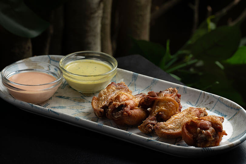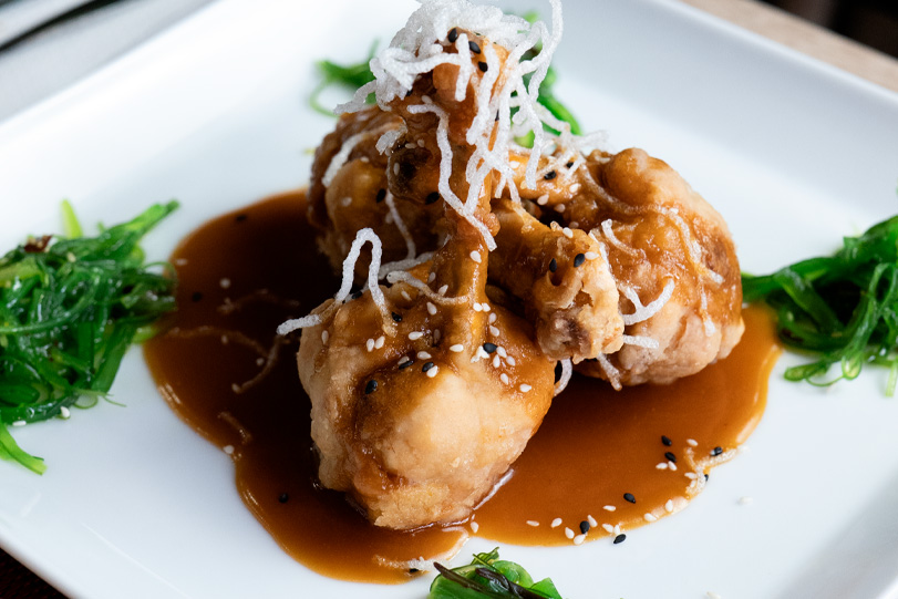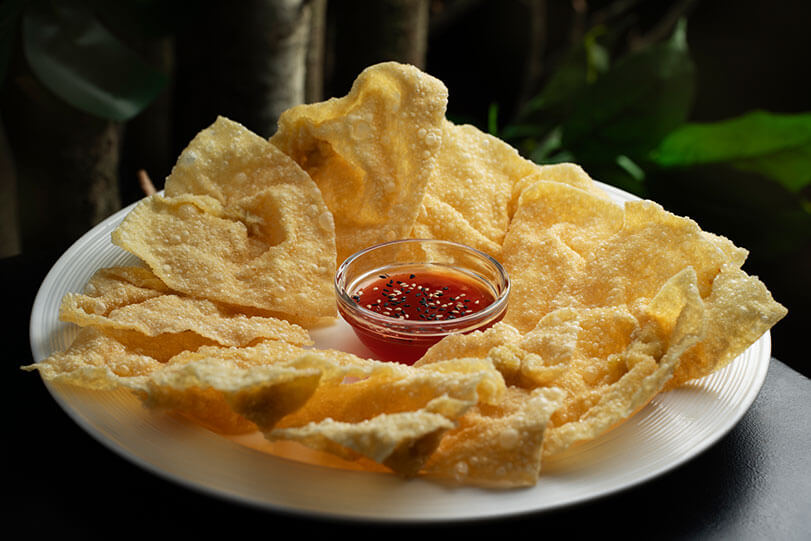 1 docena de wantan crujiente relleno de pollo y acompañado con salsa tamarindo.